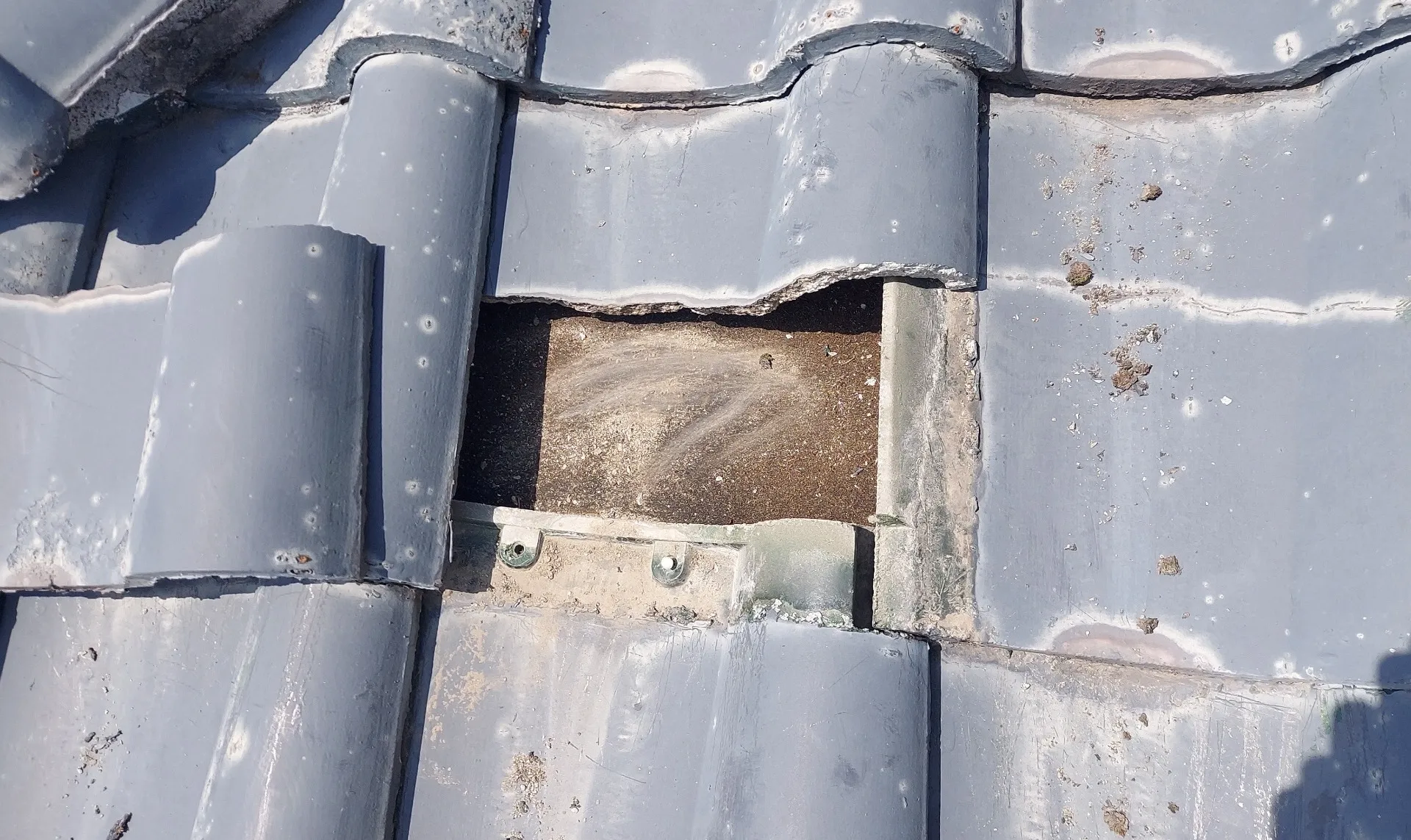 これにより、瓦の隙間から侵入した雨水は、本来排出されるべき場所を塞がれ、行き場を失い、瓦の下へと逆流。長年の雨漏りの原因となっていたのです。