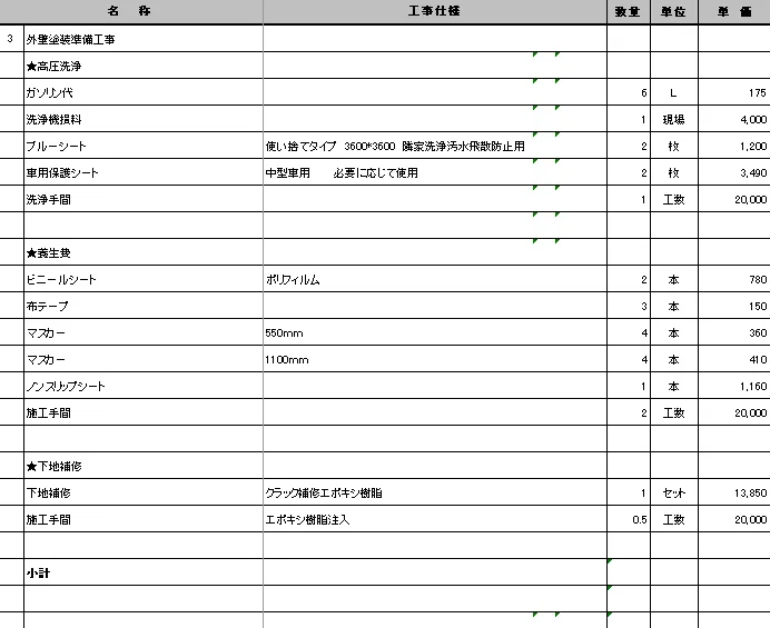 → 窓や玄関などを塗料から守る作業、材料運搬費、現場管理費など。誠実な業者はその中身も説明してくれます。